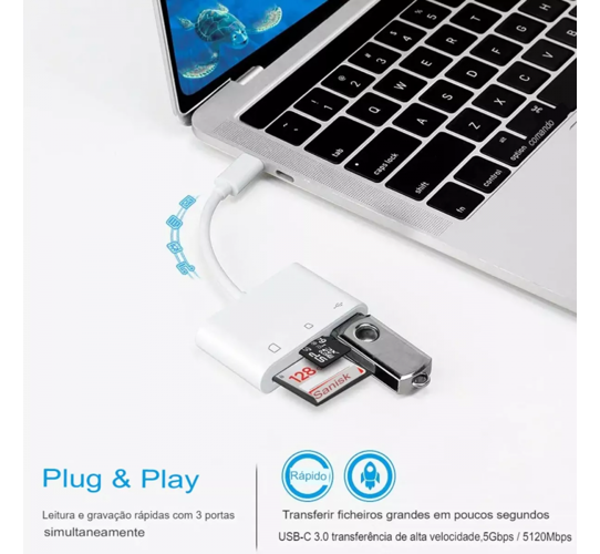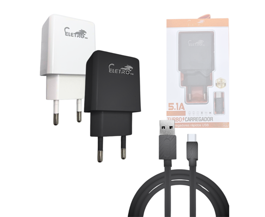 Fonte Carregador Turbo 5.1A com 02 Portas USB Cabo TIPO-C de 1 Metro Eletromex EL-4003-TY