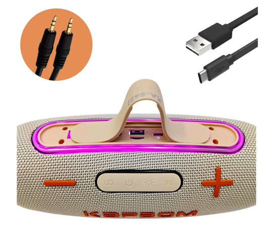 Caixa de Som Bluetooth Portátil À Prova D'agua 20W com Alça BASS LED TWS Kapbom KA-8423