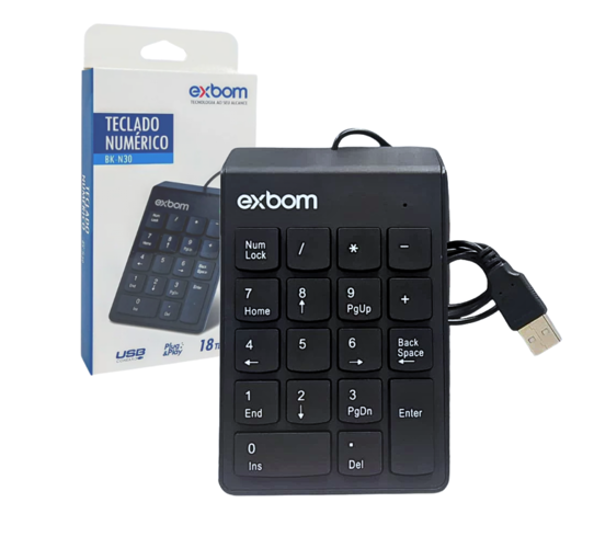 Mini Teclado Slim Numérico 18 Teclas Cabo Fixo USB Prático KA-665 / BK-N30