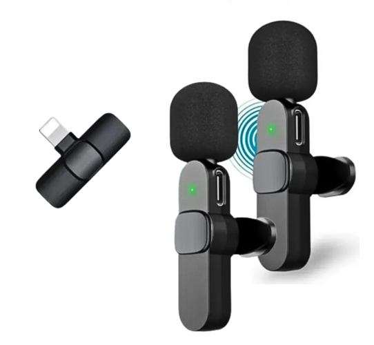 Microfone Condensador Duplo de Lapela Wireless Lightning IOS Sem Fio 2.4GHZ K9-IP-2IN1