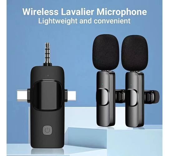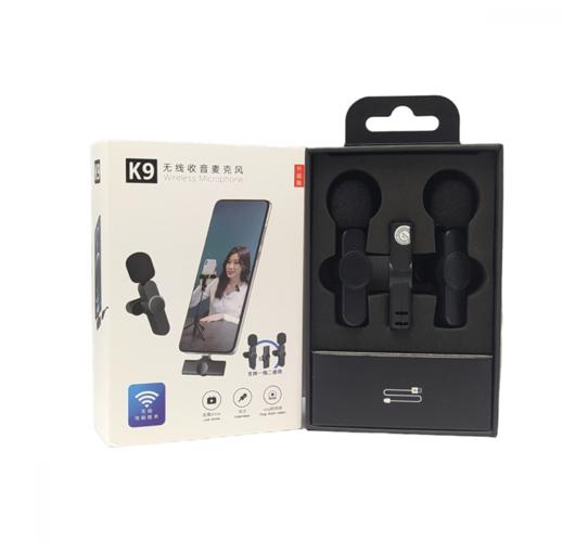 Microfone Condensador Duplo de Lapela Wireless TIPO C sem Fio 2.4GHZ K9-TC-2IN1