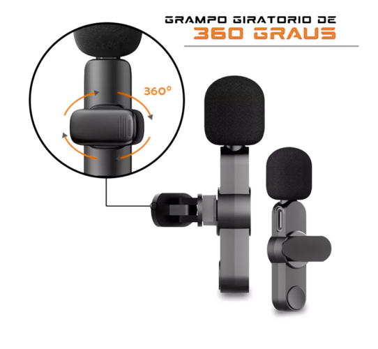 Microfone Condensador de Lapela Wireless TIPO C sem Fio 2.4GHZ K9-TC