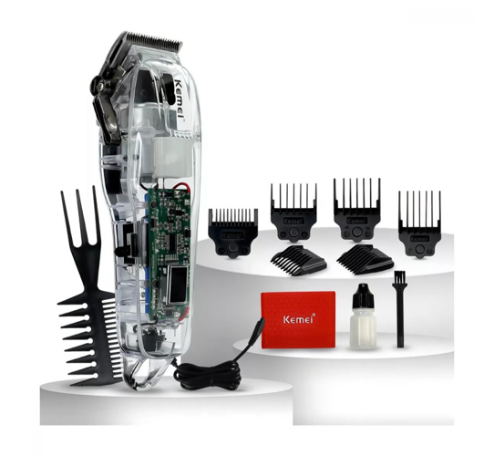 Máquina De Cortar Cabelo Profissional Sem Fio Transparente Kemei Ng203