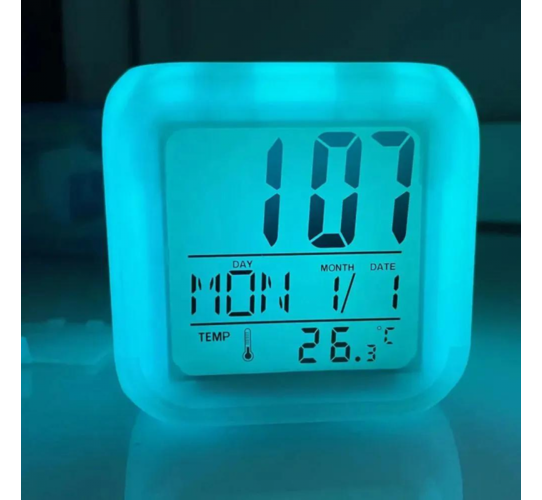 Relógio Cubo Digital com LED RGB Alarme Kapbom KA-7058