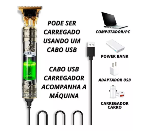 Máquina de Cortar Cabelo Barba Acabamentos, Aparador de Pelos, Recarregável Bivolt MONO DAI-3780