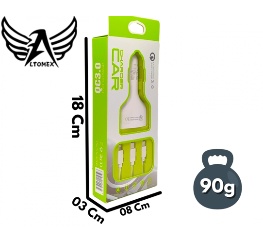 Carregador Veicular V3.0 - 3em1 (V8/TPC/IOS) Altomex AL-C95 (Somente na cor Preto)