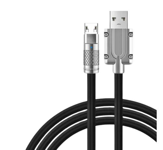 Cabo de dados V8 1 Metro Silicone acabamento em Metal e LED Eletromex EL-3124-V8