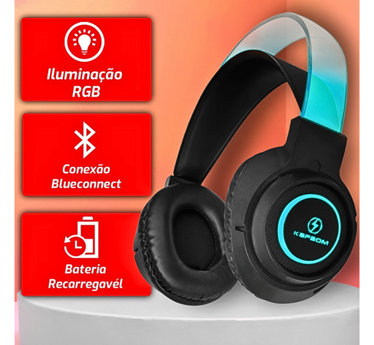 Fone de ouvido Headphone Luz RGB Bluetooth Cancelamento de Ruído Kapbom KA-755