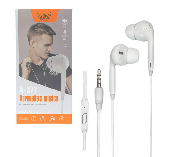 Fone de Ouvido Intra Auricular Com Fio e Microfone Encaixe De Orelha Extra Bass Kapbom KA-776 (***DISPONÍVEL SOMENTE BRANCO)