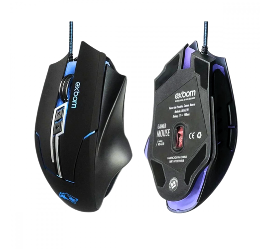 Mouse Gamer LED RGB com 7 Botões Base de Metal 3200 DPI Exbom MS-G270