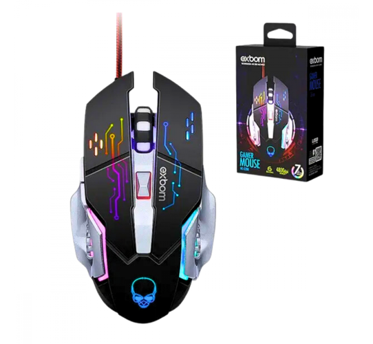 Mouse Gamer LED RGB com 6 Botões Base de Metal 4800 DPI Exbom MS-G280