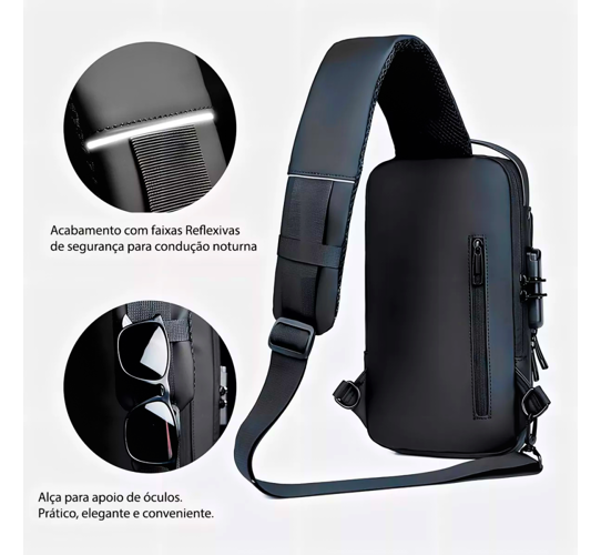 Mochila de Ombro Transversal Portátil Viagens com Trava Antifurto Eletromex EL-3802