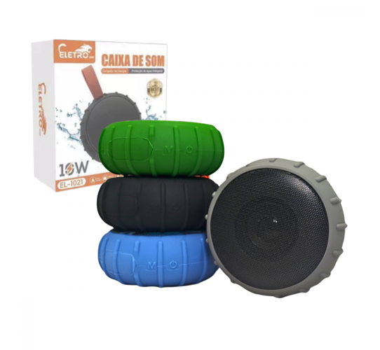 Caixa de Som Bluetooth Portátil À Prova D'agua 10W BASS TWS Eletromex EL-1021