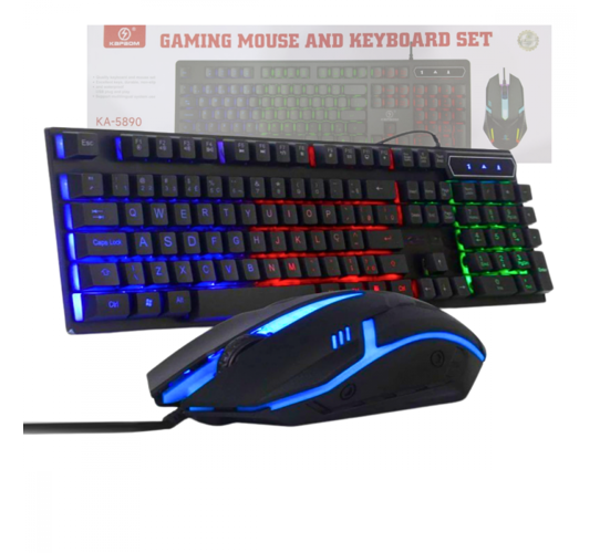 Kit Teclado E Mouse Gamer Preto Semi Mecânico LED RGB Kapbom KA-5890