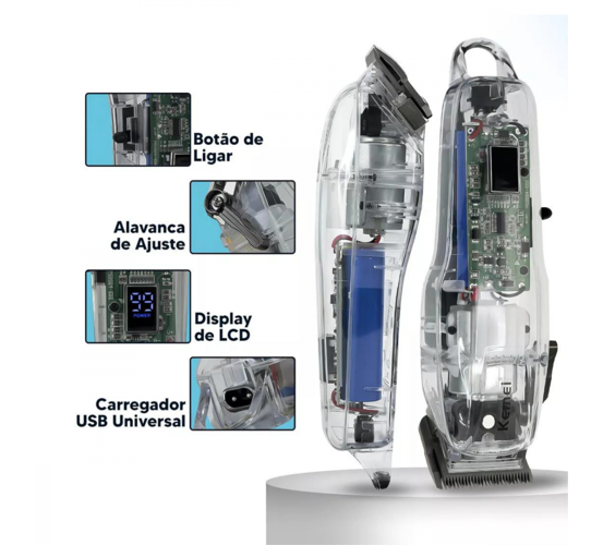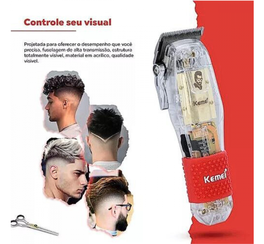 Maquina De Cortar Cabelo Transparente Bivolt Kemei Ng108