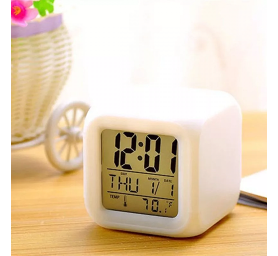 Relógio Cubo Digital com LED RGB Alarme Kapbom KA-7058