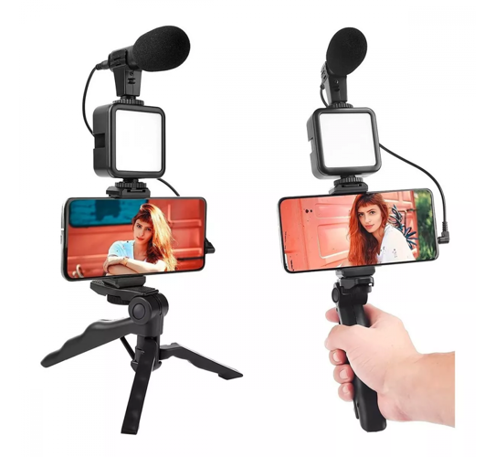 Suporte para Celular com Tripé Luz LED para Streaming Podcast Self com Microfone Kapbom KA-5673 / KA-ZP115