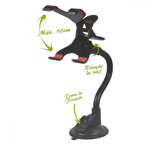 Suporte Veicular Universal para Celular Braço Articulável e Ventosa de Fixação Exbom SP-T20