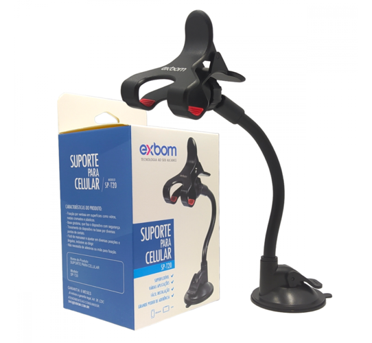 Suporte Veicular Universal para Celular Braço Articulável e Ventosa de Fixação Exbom SP-T20