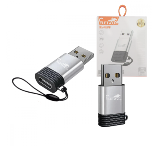 Plug Adaptador Conversor USB 3.1 TIPO-C Fêmea para USB 2.0 Macho com alça Eletromex EL-3116