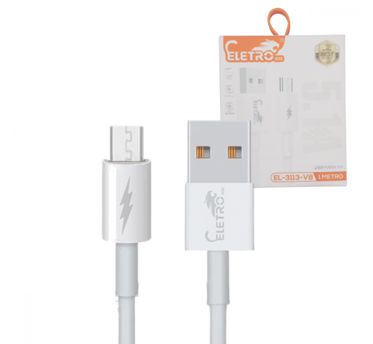 Cabo de dados USB / V8 5.1A de 1 Metro Eletromex EL-3113-V8