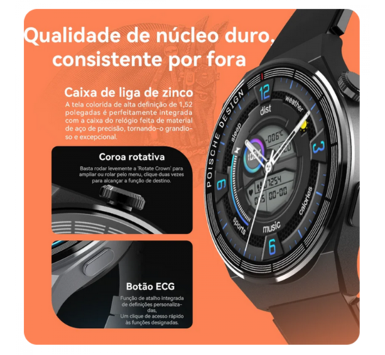 Relógio Inteligente Smartwatch 52mm com 02 Pulseiras AMAX 3 MAX (***DISPONÍVEL 03 LARANJA E 01 VERDE)