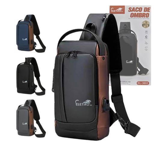 Mochila de Ombro Transversal Portátil Viagens com Trava Antifurto Eletromex EL-3802