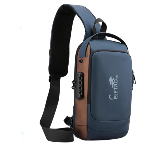 Mochila de Ombro Transversal Portátil Viagens com Trava Antifurto Eletromex EL-3803
